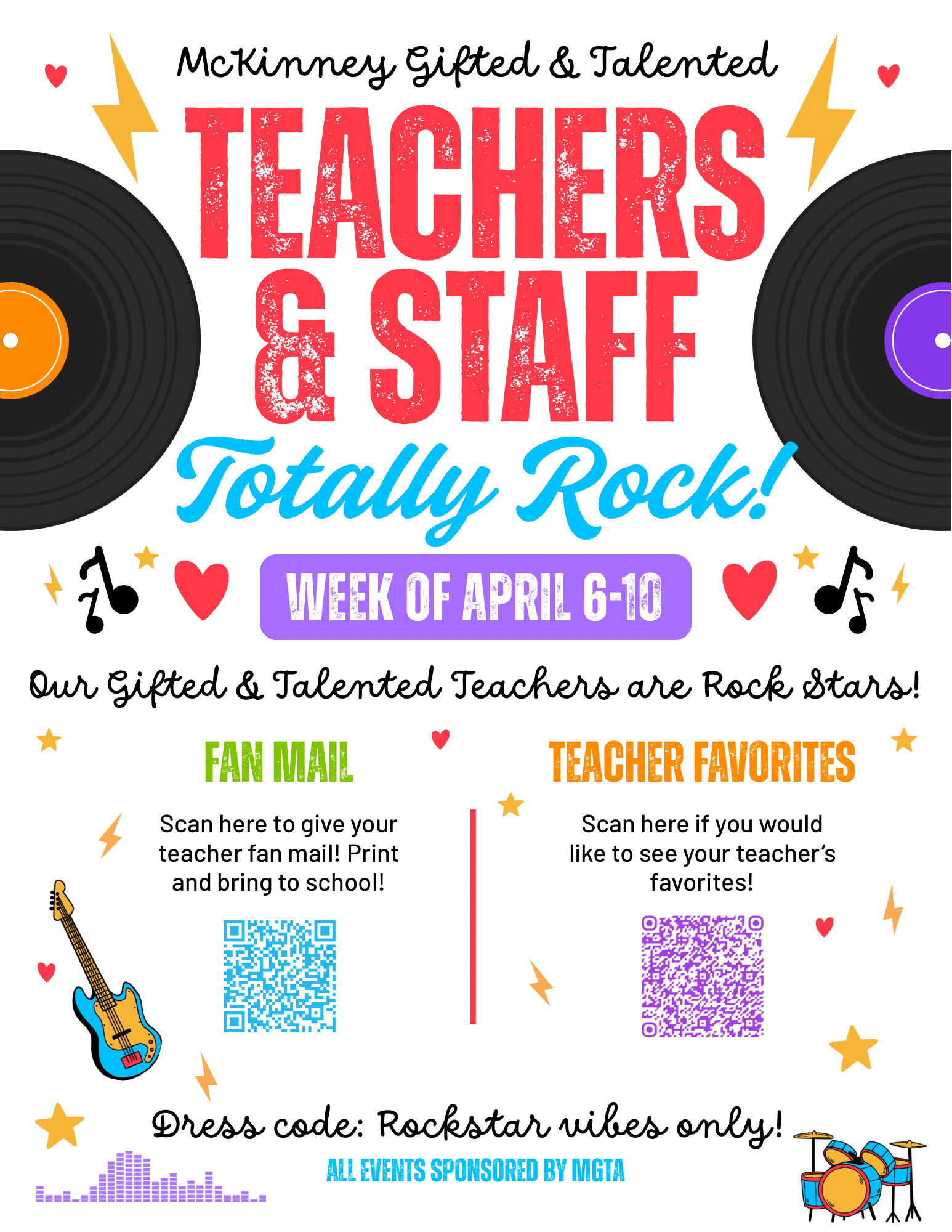 See flyer below for more details on how to celebrate your teacher and let them know they Totally Rock!